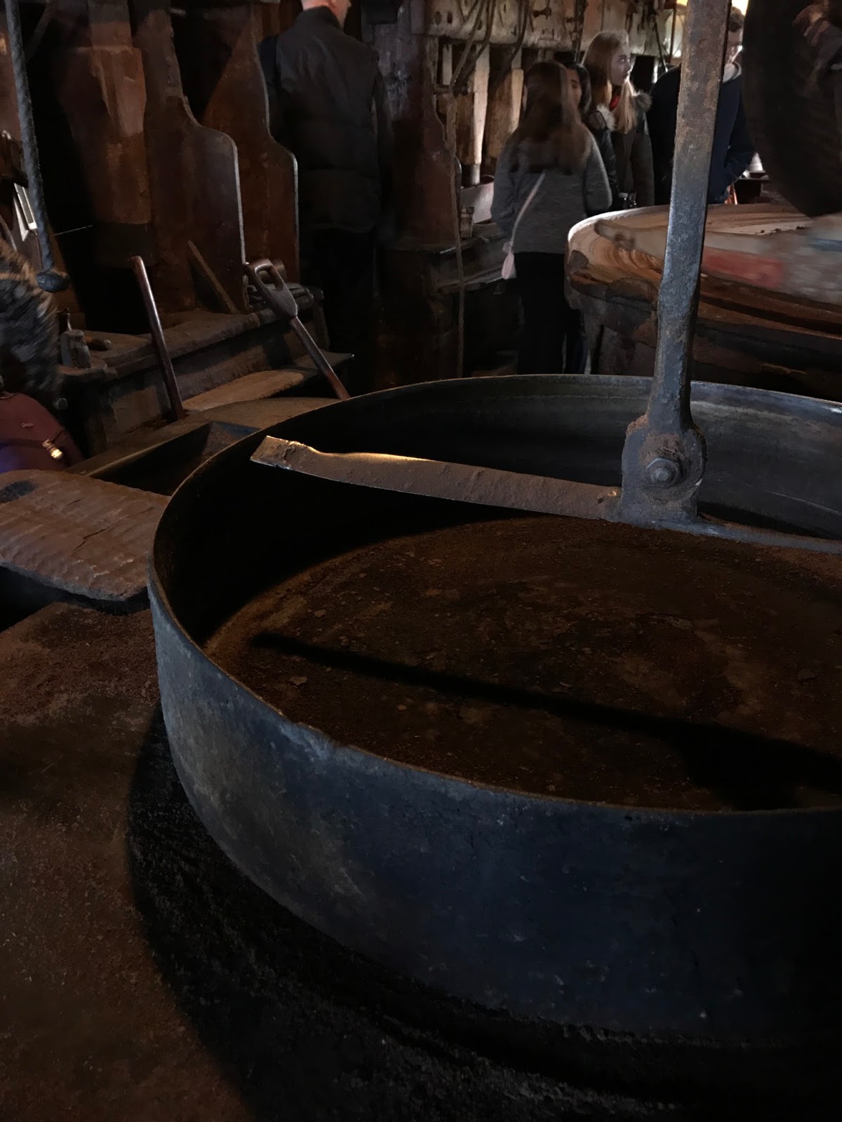 Ficamos a saber como funcionam as mós que são extremamente pesadas e estão postas numa esfera. Para que não fique danificada, os moinhos são rodados frequentemente.