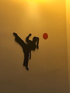 Decidimos em conjunto que o tema seria Karaté. Luísa é karateca...